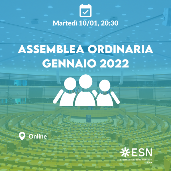 E convocata ufficialmente l’Assemblea Ordinaria di Gennaio, che si svolgera in prima convocazione in data 09/01/2023 alle ore 03.00 presso via Lungarno Pacinotti 33 in seconda convocazione in data 10/01/2023 alle ore 20.30 Online su Google Meet (in modo da permettere a tutti di partecipare).