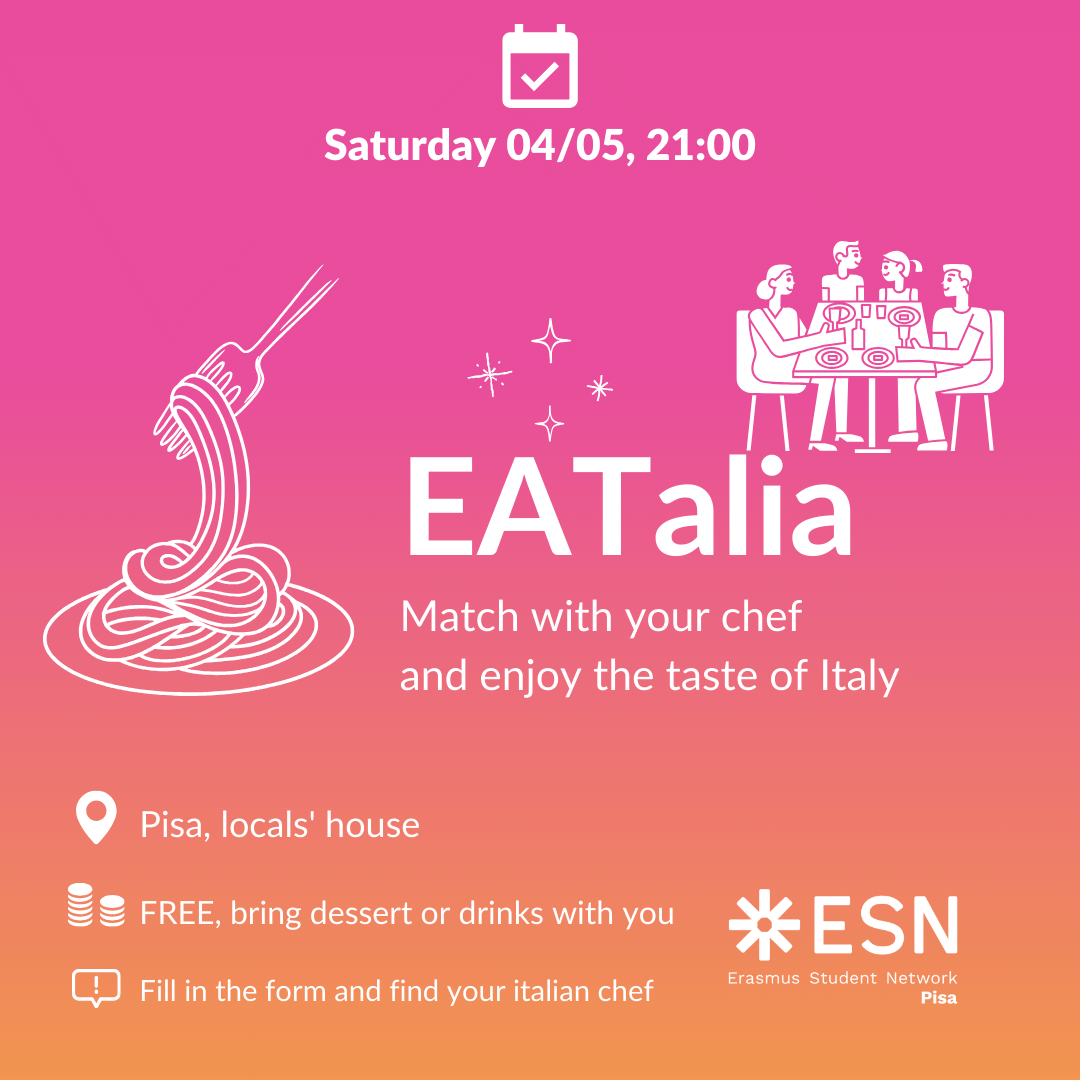 Do you want to enjoy an authentic Italian dinner plus some goodies from various regions? ESN staff will welcome you to their kitchen!